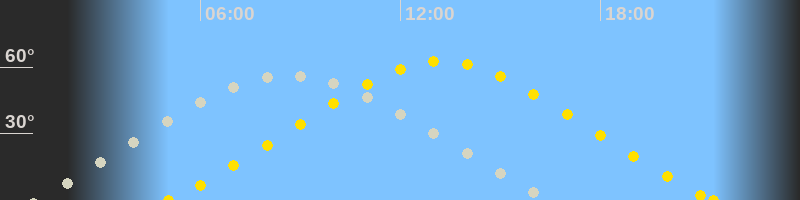 Höchster Sonnenstand (Kulmination)13:13 Uhr (h = 62.5°)
