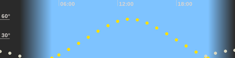 | Höchster Sonnenstand (Kulmination) | 13:16 Uhr (h = 60.6°) |