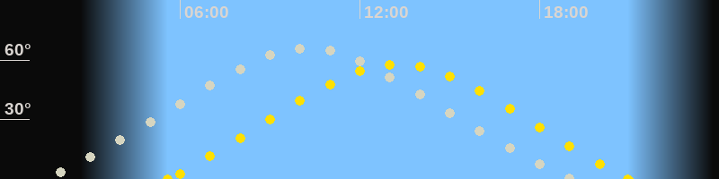 | Höchster Stand (Kulmination) | 10:11 Uhr (h=66.1°) |