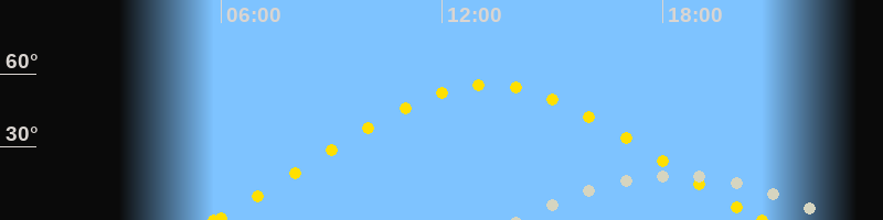 | Höchster Sonnenstand (Kulmination) | 13:15 Uhr (h = 55.4°) |