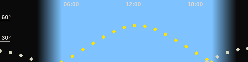 | Sonnenaufgang | 05:59 Uhr im Nordosten (αAz = 66.6°) |