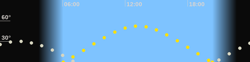 | Sonnenaufgang | 06:03 Uhr im Osten (αAz = 68.1°) |