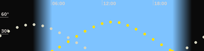 | Sonnenaufgang | 06:08 Uhr im Osten (αAz = 69.8°) |