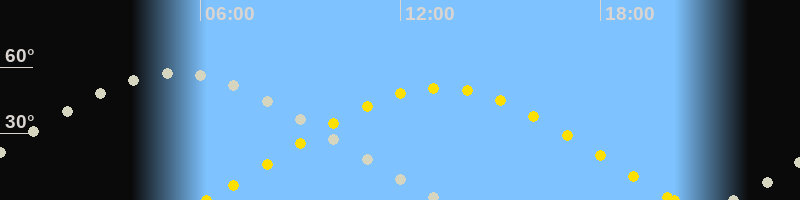 | Sonnenaufgang | 06:11 Uhr im Osten (αAz = 70.9°) |
