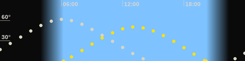 | Höchster Stand (Kulmination) | 06:01 Uhr (h=61.3°) |