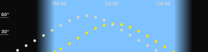 | Sonnenaufgang | 06:18 Uhr im Osten (αAz = 73.7°) |