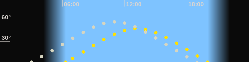 | Sonnenaufgang | 06:20 Uhr im Osten (αAz = 74.3°) |