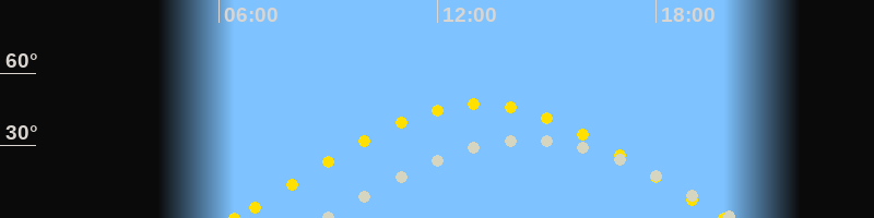 | Sonnenaufgang | 06:26 Uhr im Osten (αAz = 76.6°) |