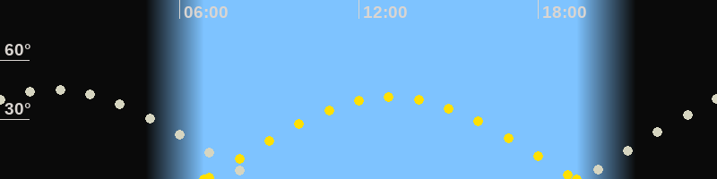 | Höchster Sonnenstand (Kulmination) | 13:04 Uhr (h = 41.5°) |