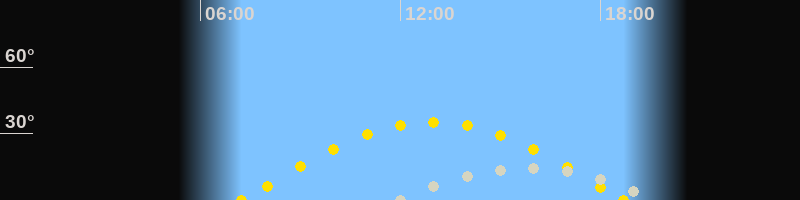 | Sonnenaufgang | 07:14 Uhr im Osten (αAz = 95.4°) |