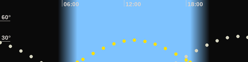 Sonnenaufgang07:29 Uhr im Osten (αAz = 100.9°)