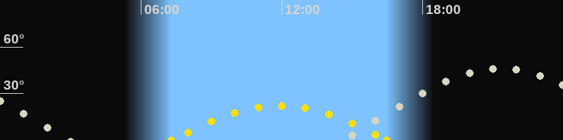 | Höchster Sonnenstand (Kulmination) | 11:54 Uhr (h = 22.1°) |