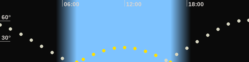 | Höchster Sonnenstand (Kulmination) | 11:54 Uhr (h = 21.3°) |