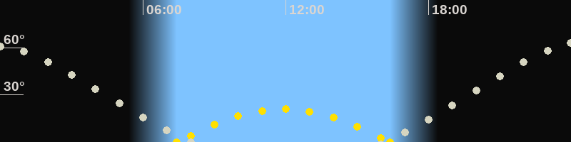 | Höchster Sonnenstand (Kulmination) | 11:54 Uhr (h = 21°) |