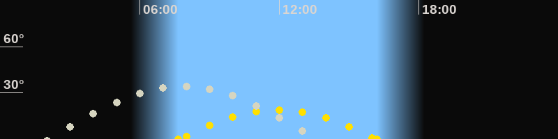 | Höchster Sonnenstand (Kulmination) | 11:56 Uhr (h = 18.9°) |