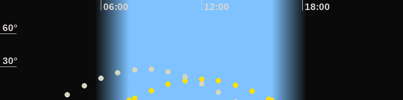 | Höchster Sonnenstand (Kulmination) | 11:56 Uhr (h = 18.7°) |