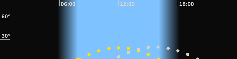 | Höchster Sonnenstand (Kulmination) | 11:59 Uhr (h = 17.3°) |
