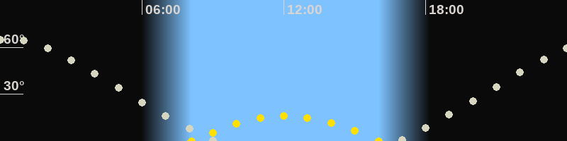 | Höchster Sonnenstand (Kulmination) | 12:04 Uhr (h = 16.1°) |