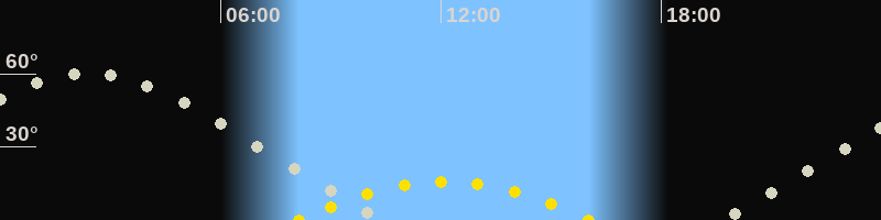 | Höchster Sonnenstand (Kulmination) | 12:05 Uhr (h = 16°) |