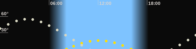 Höchster Sonnenstand (Kulmination)12:06 Uhr (h = 15.9°)