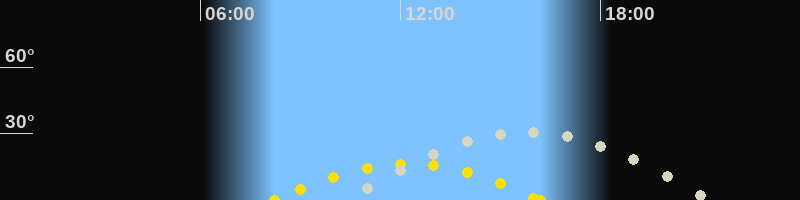 | Höchster Sonnenstand (Kulmination) | 12:13 Uhr (h = 16.3°) |