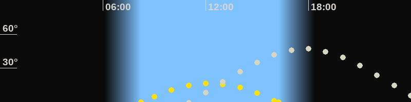| Höchster Stand (Kulmination) | 17:42 Uhr (h=46.9°) |