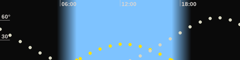 | Höchster Sonnenstand (Kulmination) | 12:24 Uhr (h = 23.9°) |