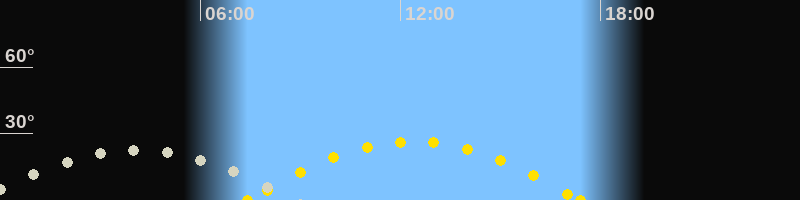 | Sonnenaufgang | 07:24 Uhr im Osten (αAz = 109.8°) |