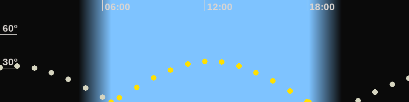 Höchster Sonnenstand (Kulmination)12:19 Uhr (h = 36.3°)