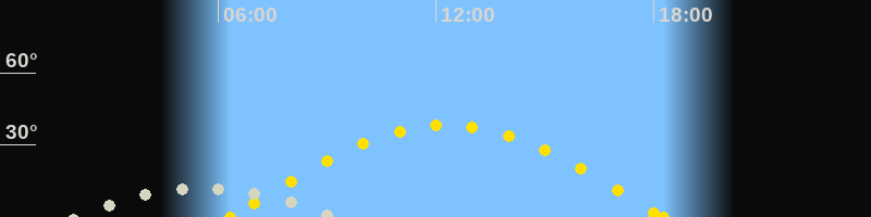 Höchster Sonnenstand (Kulmination)12:18 Uhr (h = 38.3°)