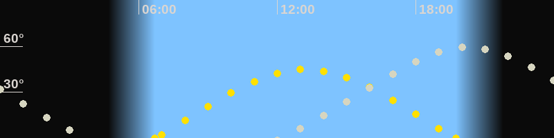 | Mondaufgang | 12:00 Uhr im Nordosten (αAz = 53.9°) |
