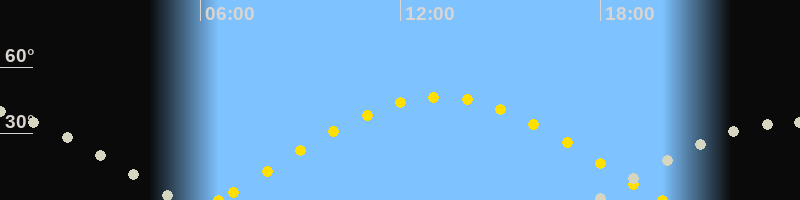 | Höchster Sonnenstand (Kulmination) | 13:12 Uhr (h = 46.4°) |
