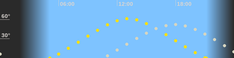 | Höchster Sonnenstand (Kulmination) | 13:07 Uhr (h = 61°) |