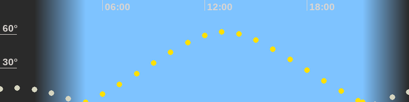 | Höchster Sonnenstand (Kulmination) | 13:09 Uhr (h = 62.1°) |