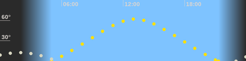 | Höchster Sonnenstand (Kulmination) | 13:09 Uhr (h = 62.2°) |