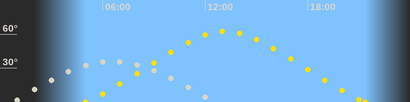 | Höchster Sonnenstand (Kulmination) | 13:10 Uhr (h = 62.6°) |