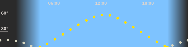 | Höchster Sonnenstand (Kulmination) | 13:15 Uhr (h = 61.9°) |