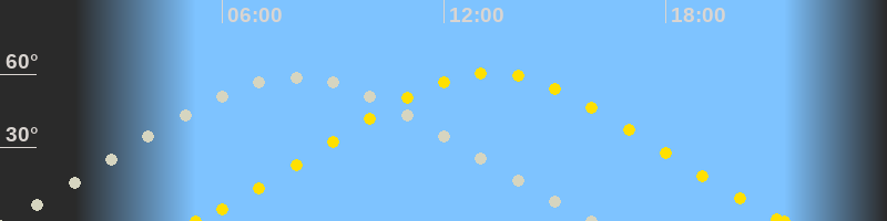 | Höchster Sonnenstand (Kulmination) | 13:16 Uhr (h = 60.5°) |