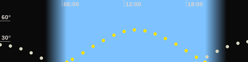 | Sonnenaufgang | 06:27 Uhr im Osten (αAz = 77°) |