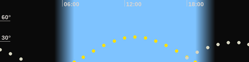 | Höchster Sonnenstand (Kulmination) | 13:00 Uhr (h = 36.5°) |