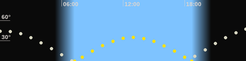 | Höchster Sonnenstand (Kulmination) | 12:59 Uhr (h = 35°) |