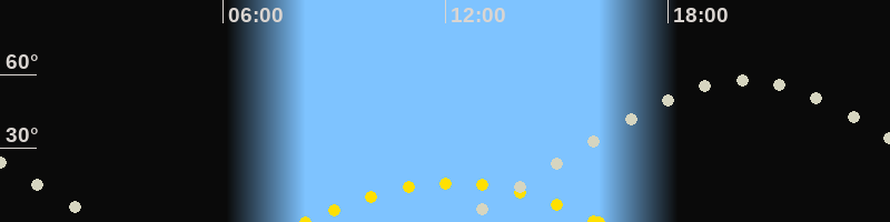 | Höchster Sonnenstand (Kulmination) | 12:11 Uhr (h = 15.9°) |