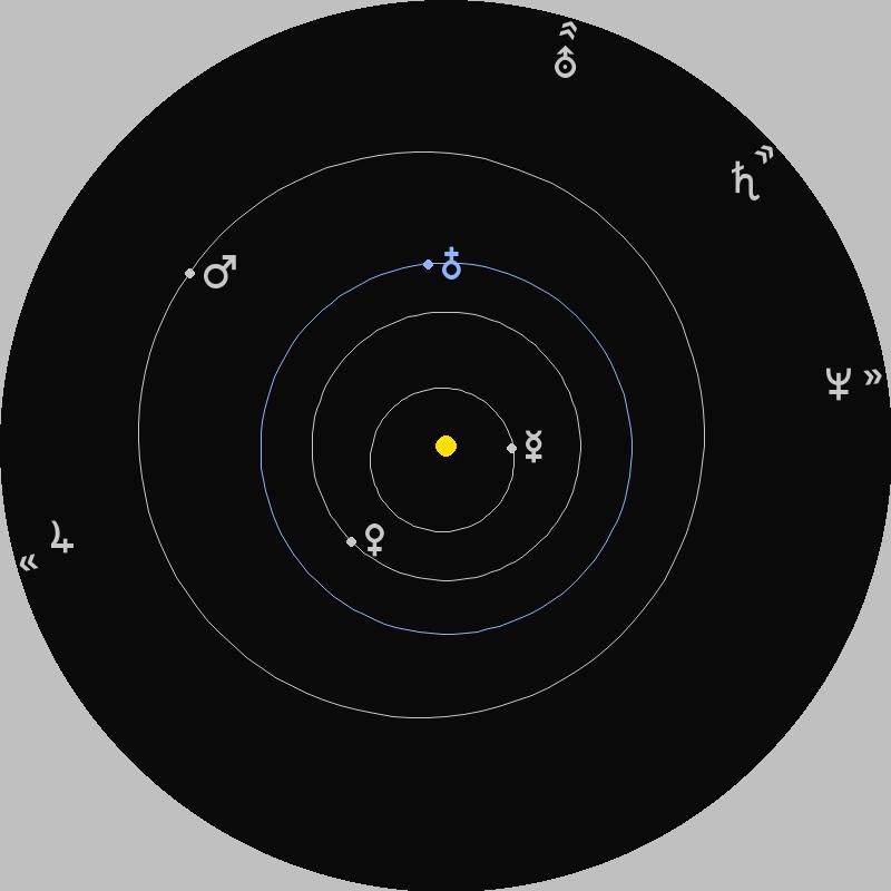 | f Merkur g Venus l Erde h Mars j Jupiter S Saturn A Uranus G Neptun |