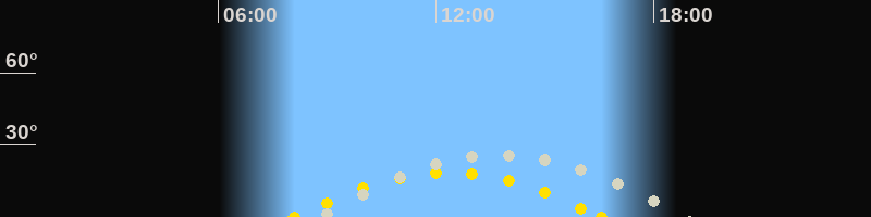 | Höchster Sonnenstand (Kulmination) | 12:20 Uhr (h = 18.5°) |