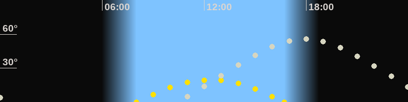 | Höchster Sonnenstand (Kulmination) | 12:21 Uhr (h = 19.7°) |