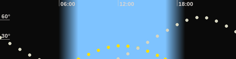 | Höchster Sonnenstand (Kulmination) | 12:22 Uhr (h = 20.5°) |