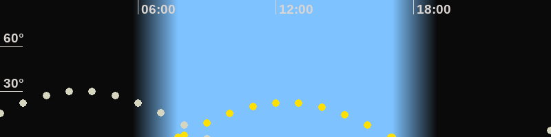 | Höchster Sonnenstand (Kulmination) | 12:24 Uhr (h = 22.9°) |