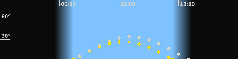 | Sonnenaufgang | 07:25 Uhr im Osten (αAz = 109.9°) |
