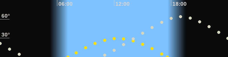 | Höchster Sonnenstand (Kulmination) | 12:23 Uhr (h = 29.3°) |