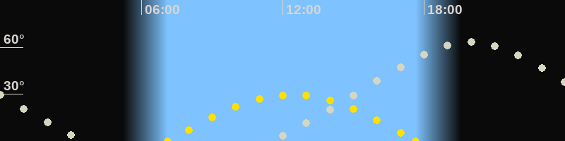 | Höchster Sonnenstand (Kulmination) | 12:23 Uhr (h = 29.7°) |